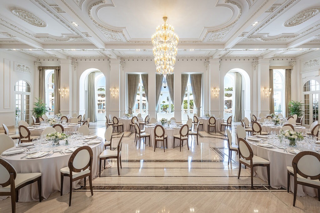 The hotel offers several distinct dining spaces, which keeps the experience from feeling repetitive. There are elegant indoor restaurants with classic architectural details, terraces that overlook the sea, and more relaxed areas for drinks or lighter fare. Each space carries the same refined tone as the rest of the property, but the atmosphere shifts naturally depending on the time of day.